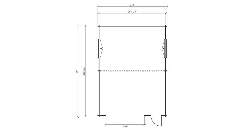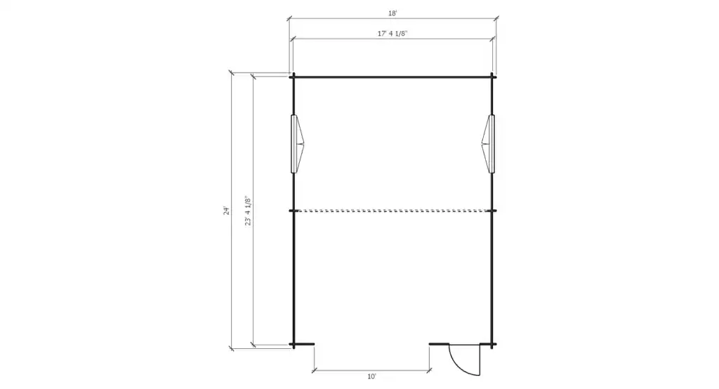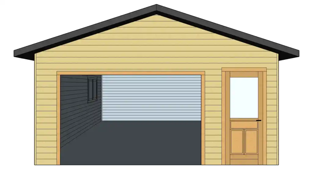 Garage 1824 is a single car garage with solid wood walls using 1-5/8″ x 4-3/8″ (40mm x 113mm) components. Once assembled, studs & siding are applied to the exterior. We offer 2 types of tongue & groove Pine siding plus an extruded PVC maintenance free siding. The main feature of our garages is the all wood interior with vaulted/cathedral ceilings, ready to hang your tools